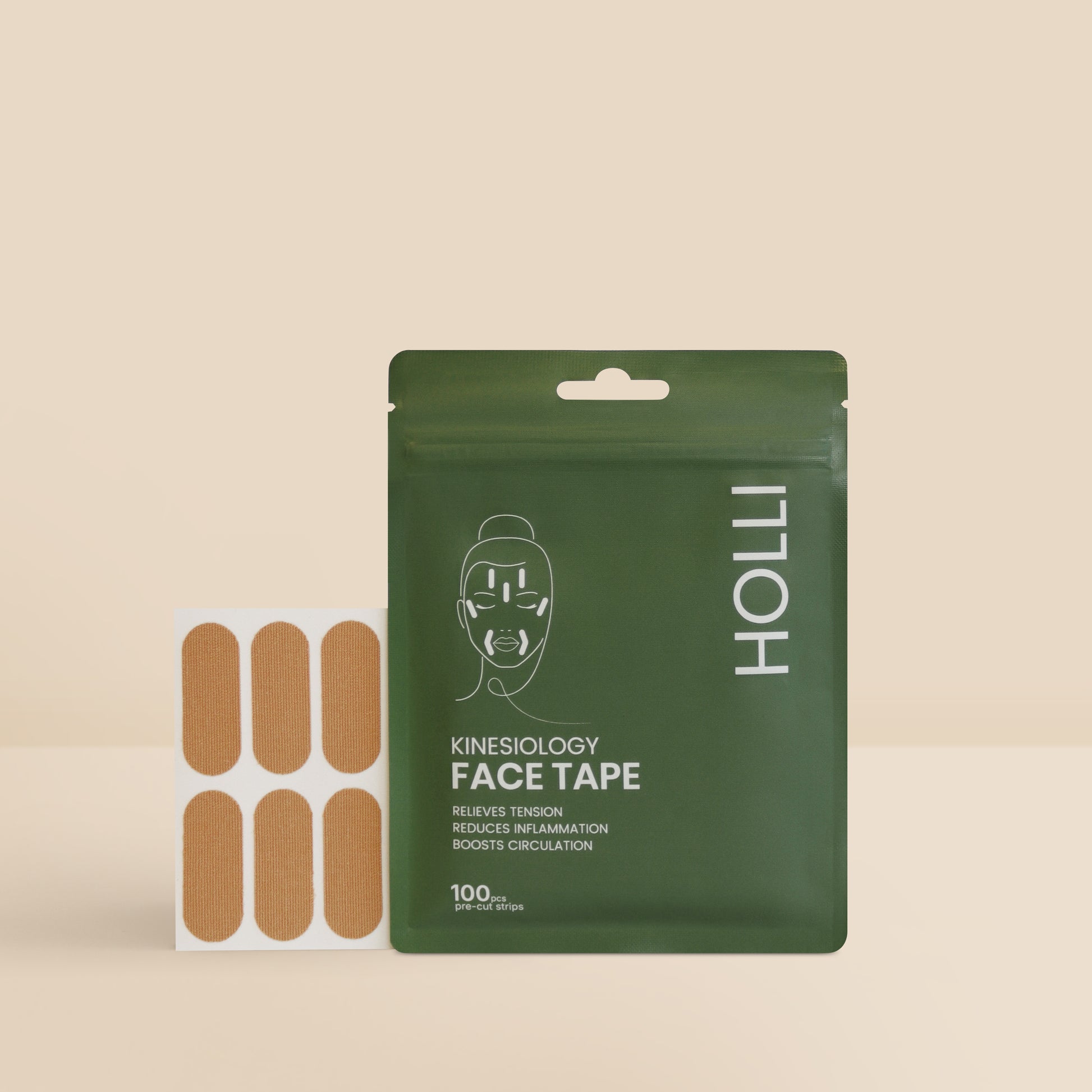 Applying kinesiology tape to your face has the same benefits as applying to the rest of you body. The tape creates a lifting effect, seperating the skin from underlying structure. This extra space helps release muscle tension, promotes circulation, boosts lymphatic drainage and reducing inflammation. All these things are essential for your skin to be healthy enough to effectively heal and care for itself.